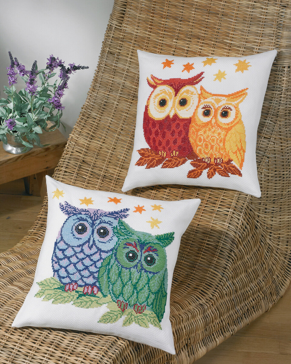 Kirjontasarja Pöllöt sininen/vihreä 42x42cm