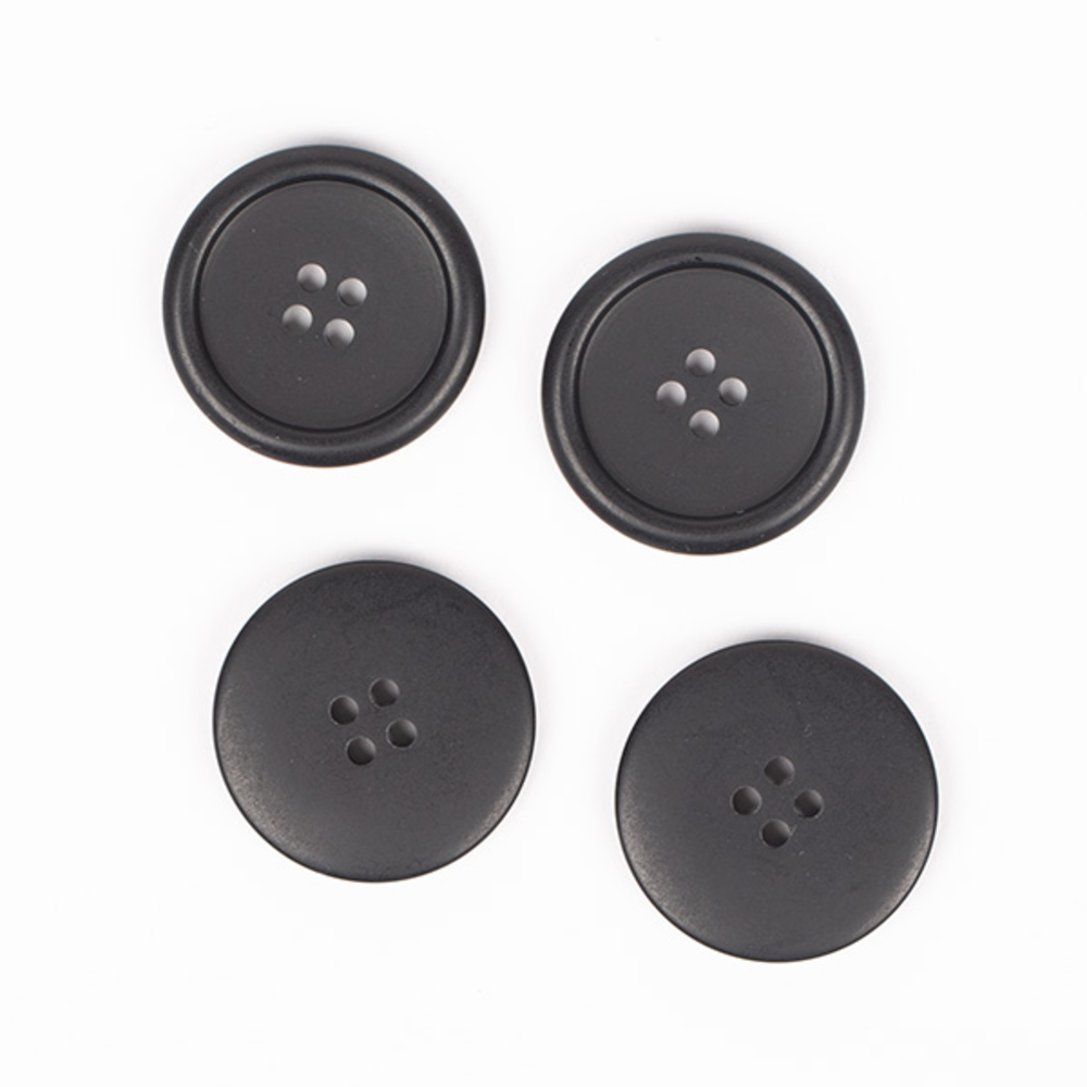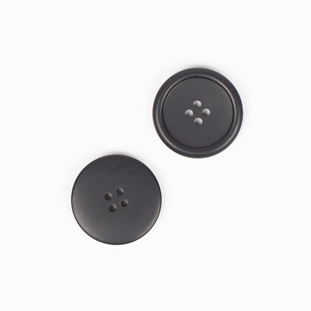 DROPS Matte Black, Nappi, 23 mm (nro 815) on tyylikäs polyesterinappi mattapinnalla ja klassisella muotoilulla. Pyöristetty muoto ja pehmeä reuna tekevät siitä hillityn mutta hienostuneen valinnan neulonta- ja ompeluprojekteihin.