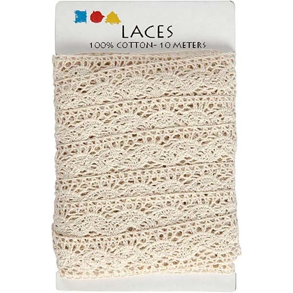 100 % puuvillasta valmistettu virkattu rustiikkinen pitsi.
