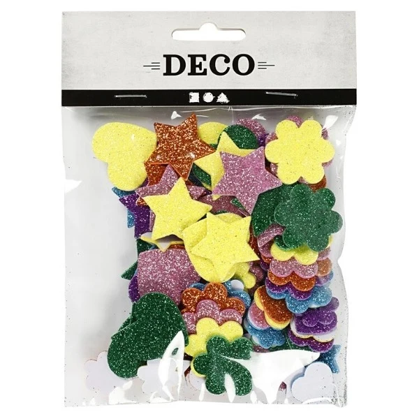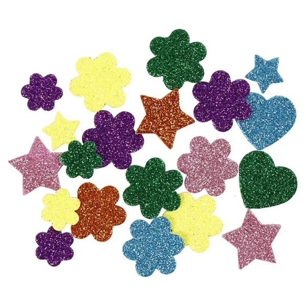 100 kappaletta. erilaisia sammaleen kumihahmoja glitterissä, mitat 19-29 mm.