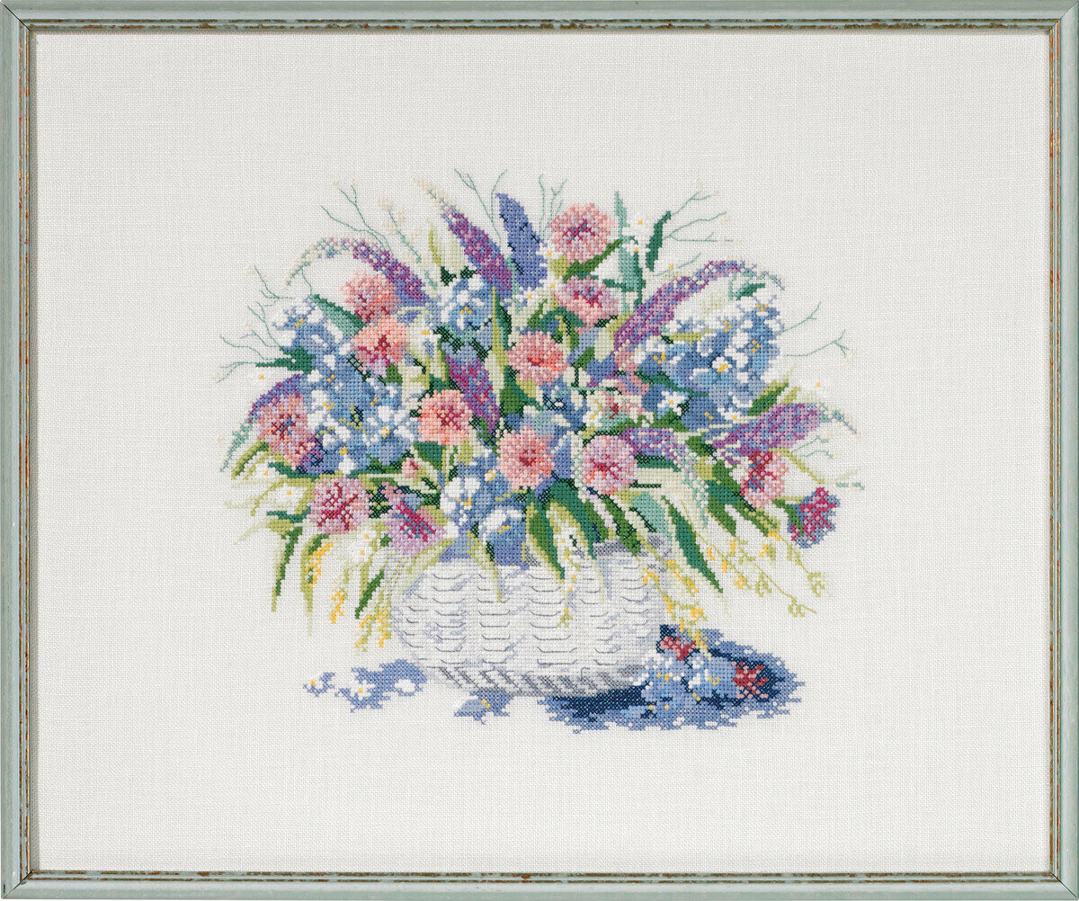 Kirjontapaketti Kori kukilla II 48x40 cm