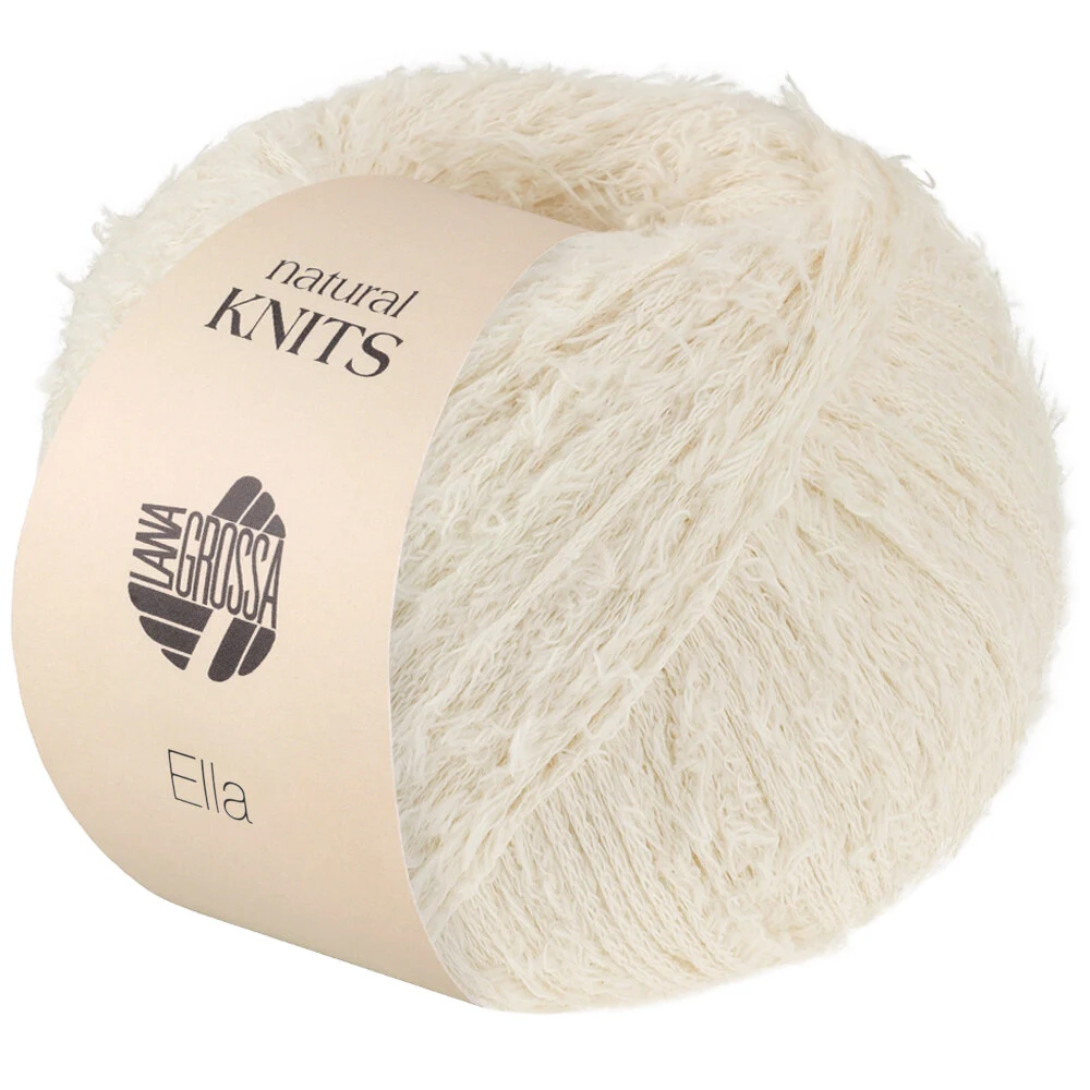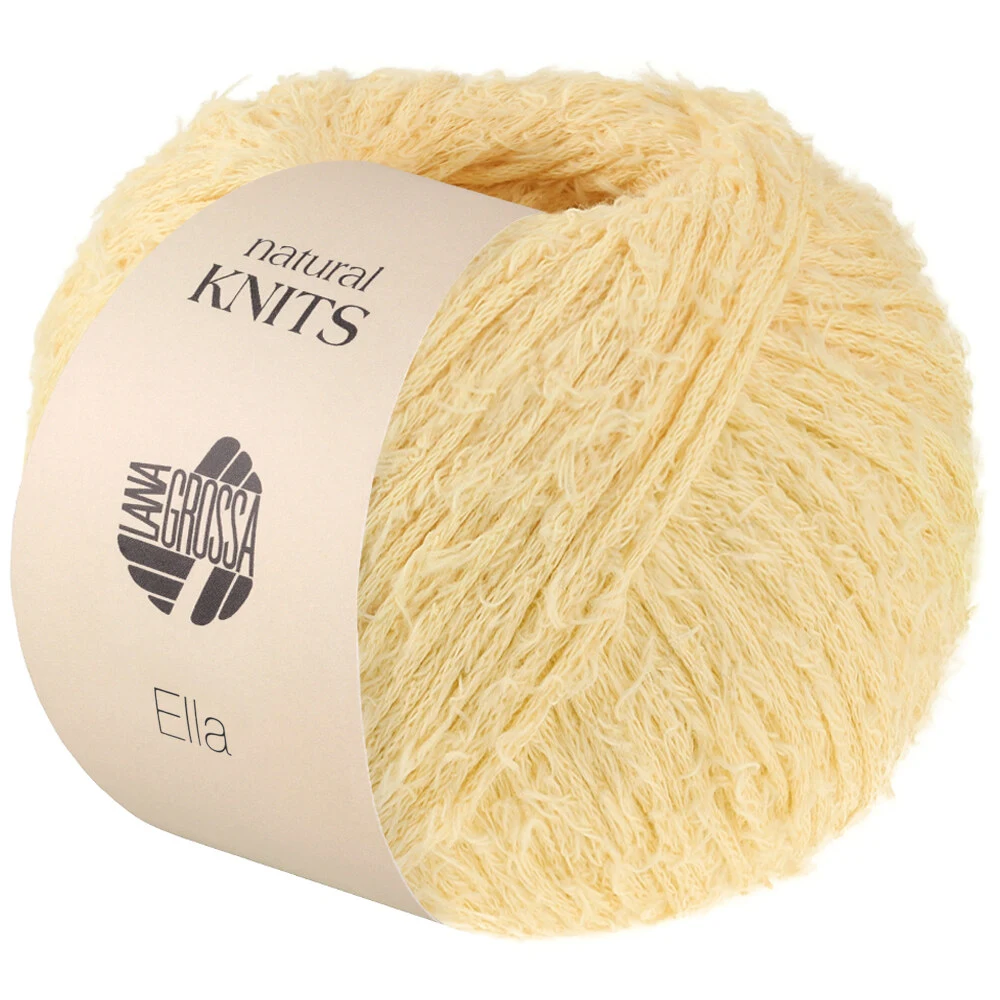 Lana Grossa Ella on kevyt puuvillalanka, jossa on mielenkiintoinen ja koristeellinen rakenne, joka antaa valmiille neuleelle elävän ilmeen. Lanka on valmistettu 100% puuvillasta ja sillä on kevyt ja ilmava luonne.