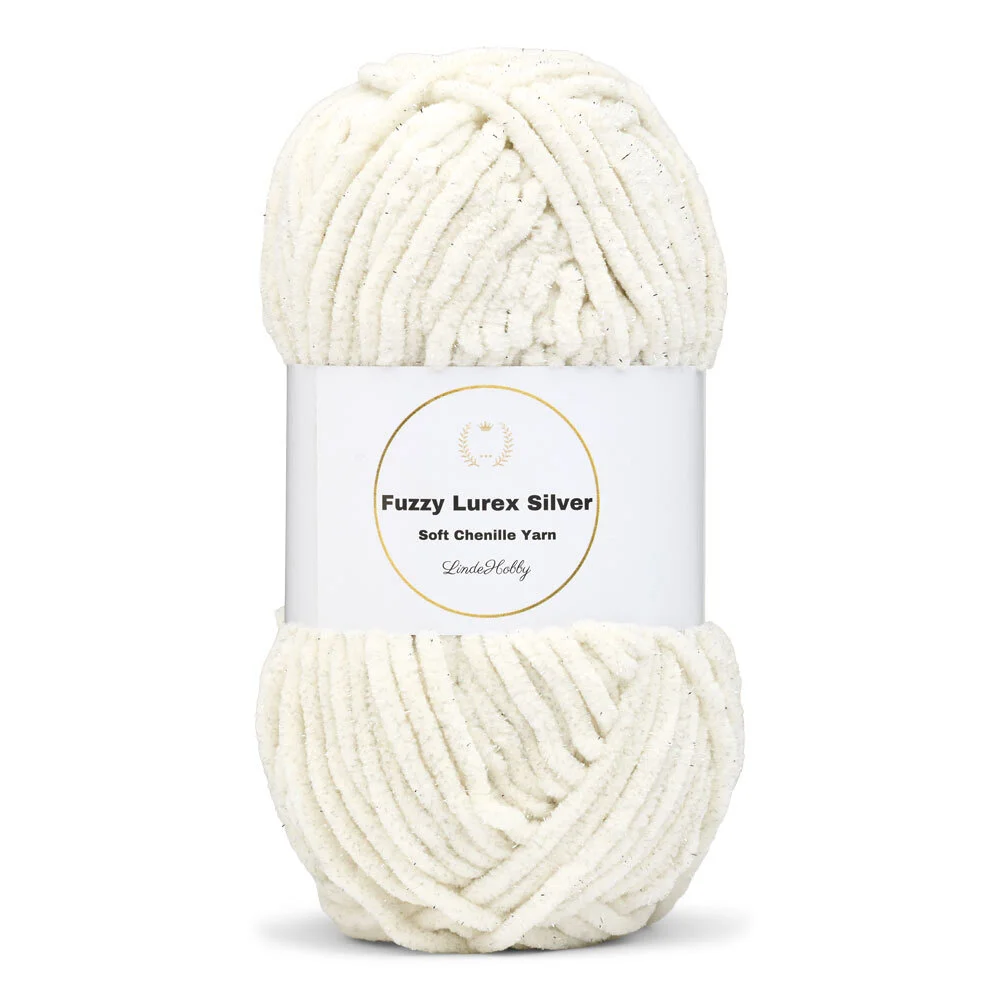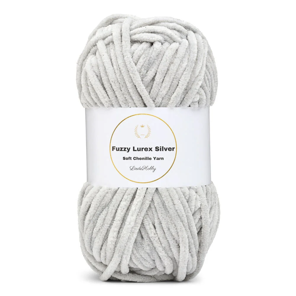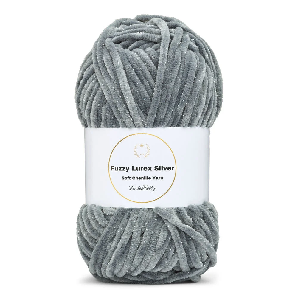 Fuzzy Chenille Silver Lurex yhdistää pehmeyden, volyymin ja hillityn hohdon – täydellinen valinta näyttäviin luoviin projekteihin.