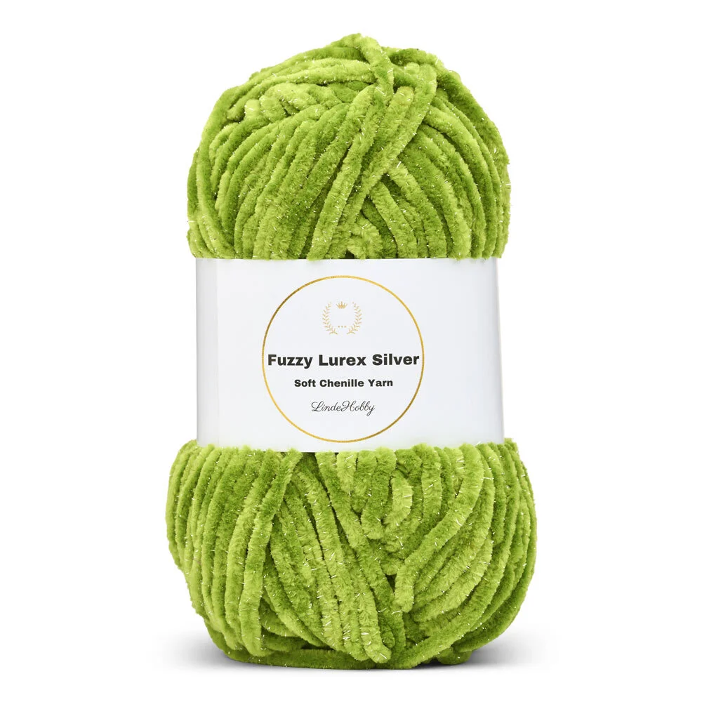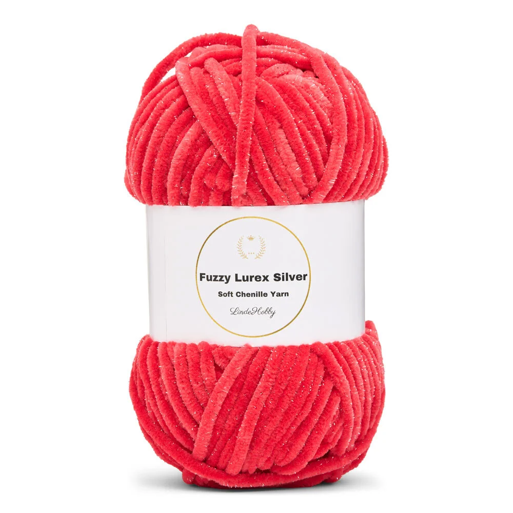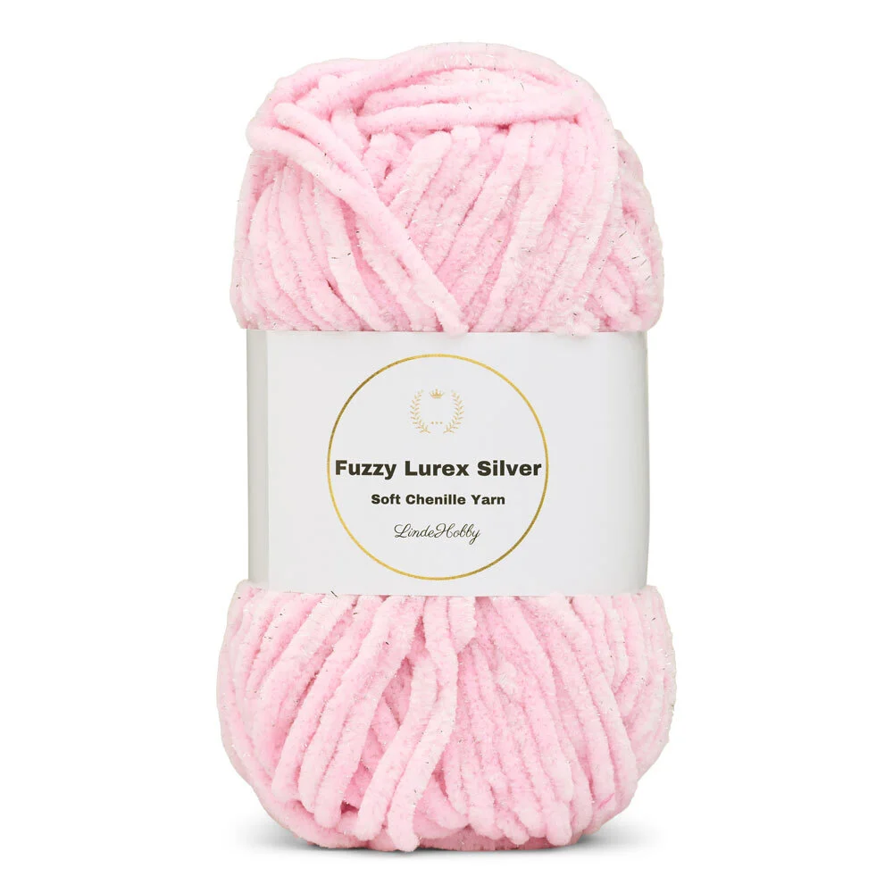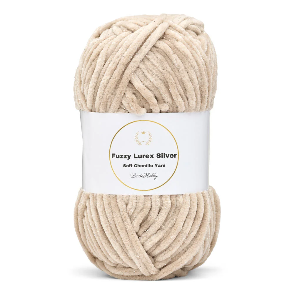 Fuzzy Chenille Silver Lurex yhdistää pehmeyden, volyymin ja hillityn hohdon – täydellinen valinta näyttäviin luoviin projekteihin.