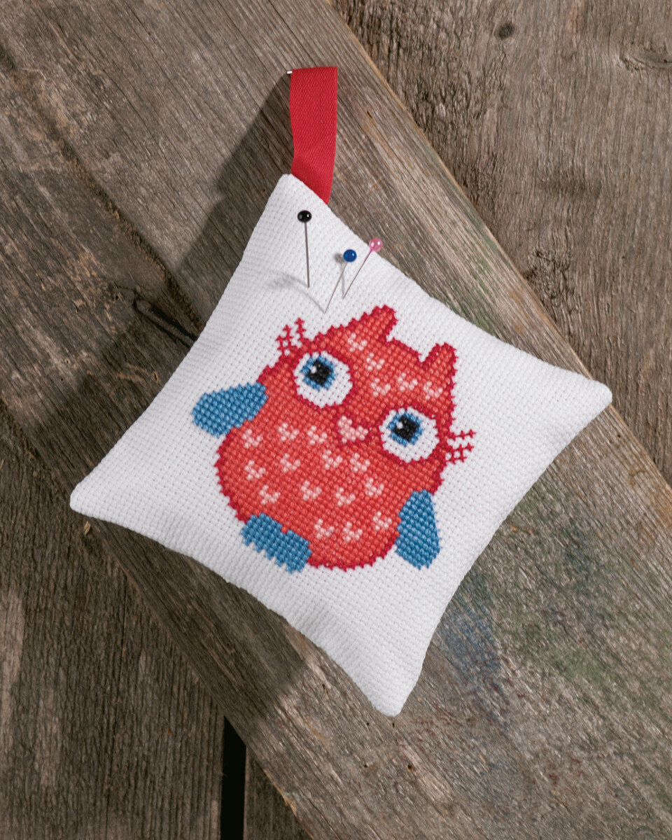 Koe kirjonnan ilo viehättävän kirjontasettimme "Neulatyyny Punainen pöllö" avulla. Tässä kuvassa näet ihastuttavan punaisen pöllön, joka istuu majesteettisesti vangitsevin silmin ja yksityiskohtaisine höyhenineen. Tämä pieni mutta houkutteleva malli tuo varmasti värikästä elämää ompeluprojekteihisi.