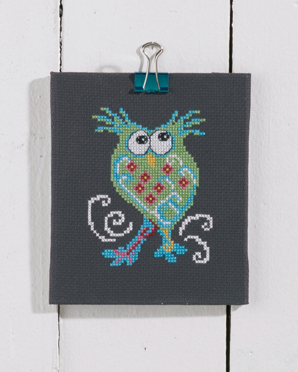 Kirjontasarja Vihreä pöllö 11 x 13 cm