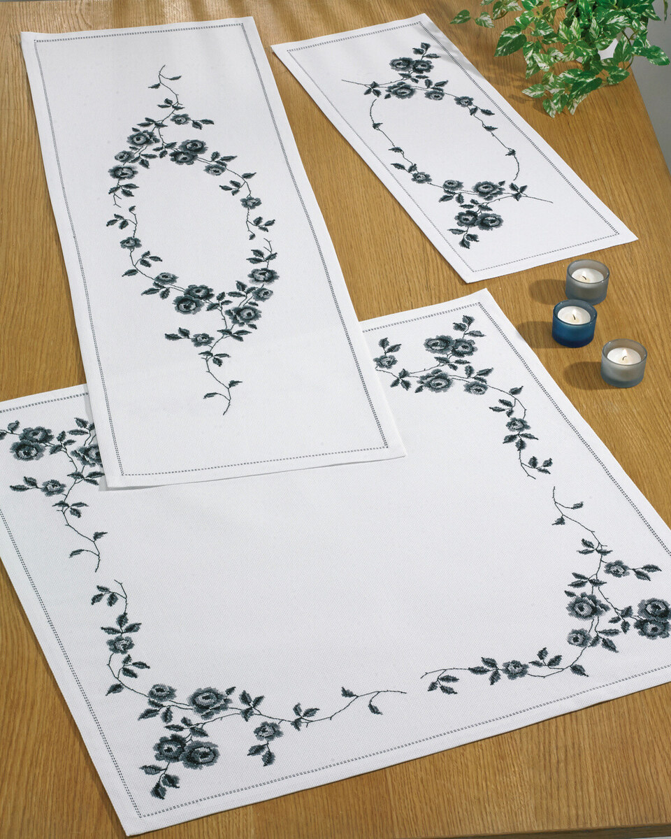 Kirjontapaketti Kiipeävät ruusut harmaassa 66 x 66 cm