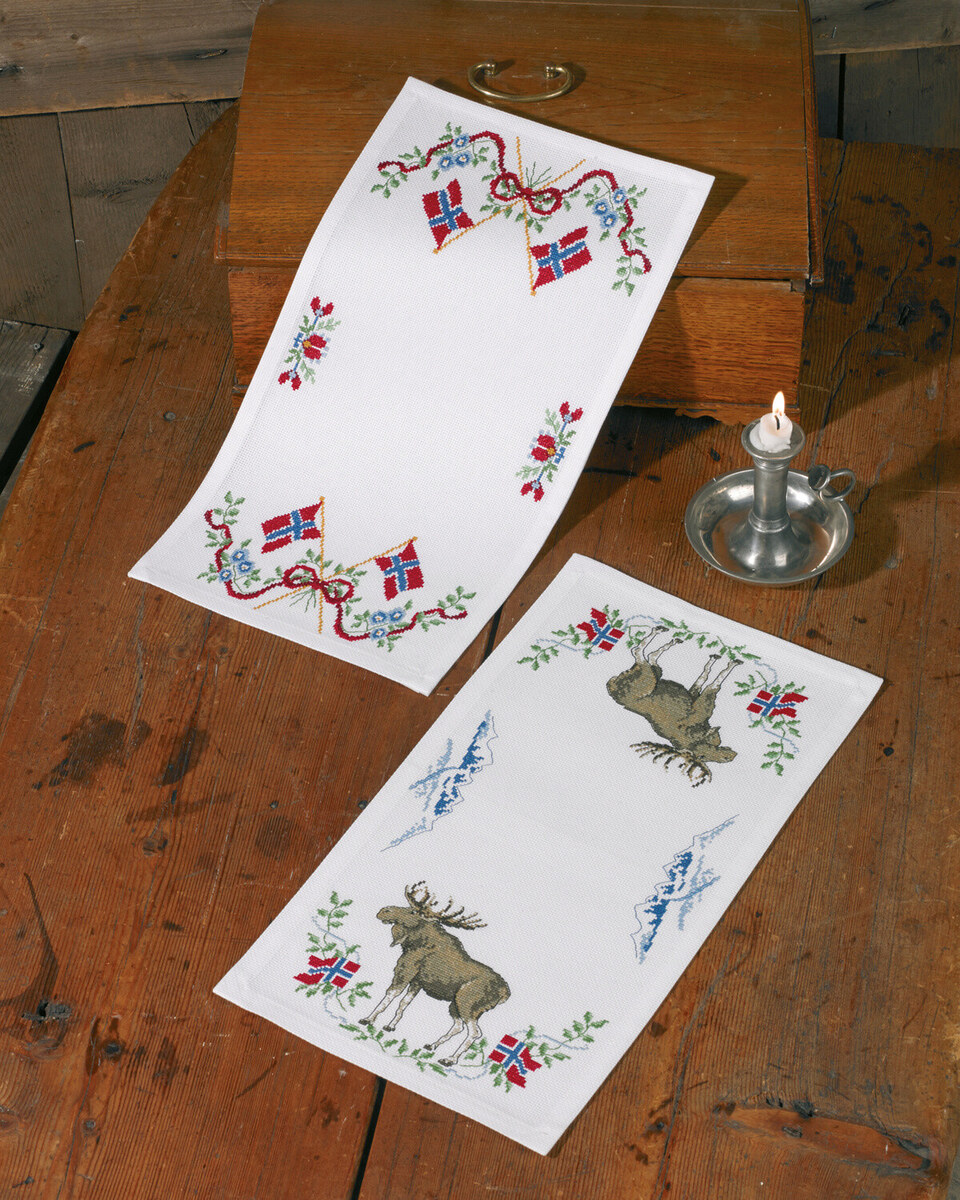 - Kirjontasetti, jossa norjalainen hirviaihe.